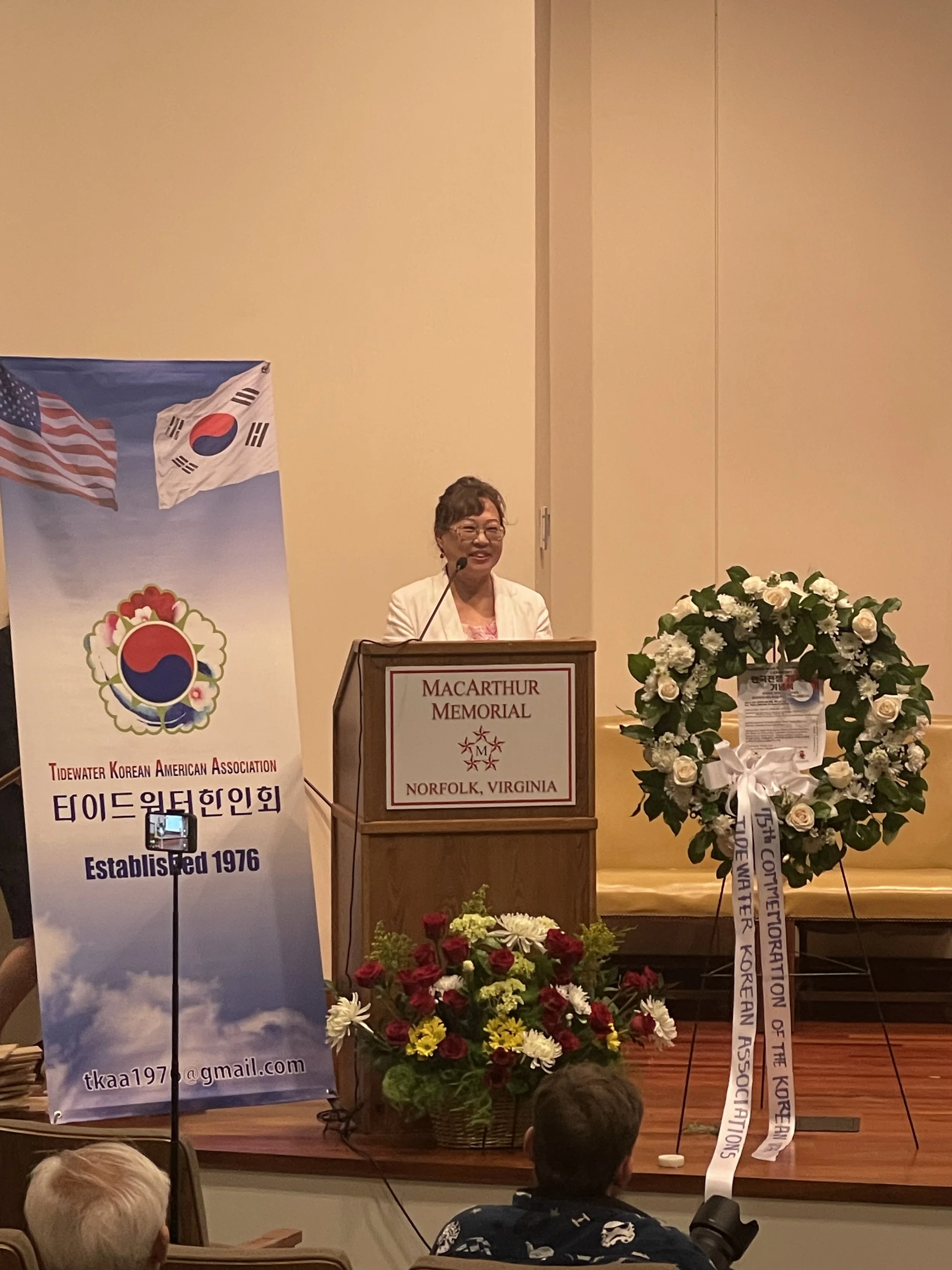 Mrs. Yusook Kim (김유숙), President of AKU (회장), provided great support during TKAA’s 75th Anniversary of the Korean War Commemoration Ceremony by delivering a wonderful speech. Her husband, Mr. Kenji Sawai, representing the Global Peace Foundation, was also in attendance to show unified support.